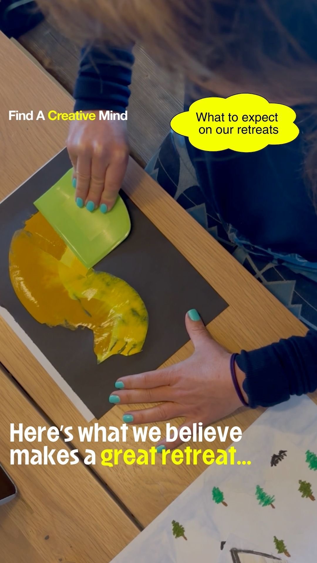 Creativity is not just painting or drawing… it doesn’t have to be an activity at all. Creativity could just be a state of mind that feels MORE FREE. That’s why our creative retreats + events are not just for creatives, they are for anyone that needs to rediscover more joy and ease in their lives.
