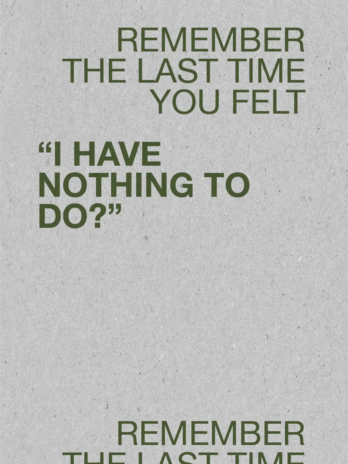 We’re here to consider if we’re getting things wrong. In our connectedness to everything ‘out there’, have we lost a connection to ourselves? Is there a collective craving for simplicity, a return to a less stimulated state that could help us notice more joy in the day to day? Have we forgotten the importance of the mundane, and the luxury of feeling bored?